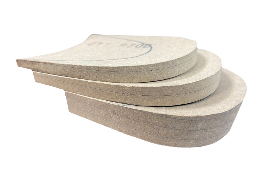 ·多层结合后雕刻打磨,做成鞋跟形状
